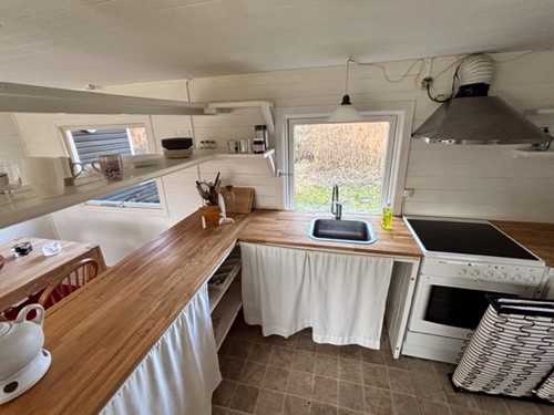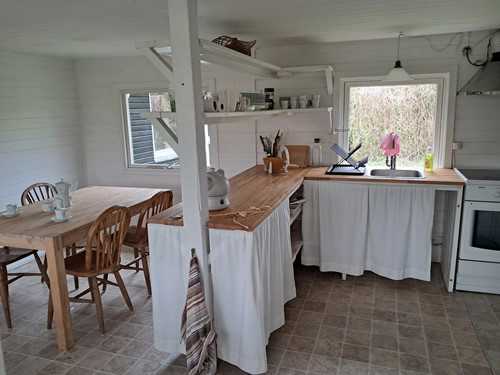 Indendørs finder du en hyggelig stue med brændeovn og varmeblæser, sovesofa og adgang til haven, et åbent og funktionelt køkken samt 2 værelser og et separat anneks med ekstra sovepladser og adgang til vaskemaskine. Simpelt, men med alt det nødvendige til en afslappende ferie.